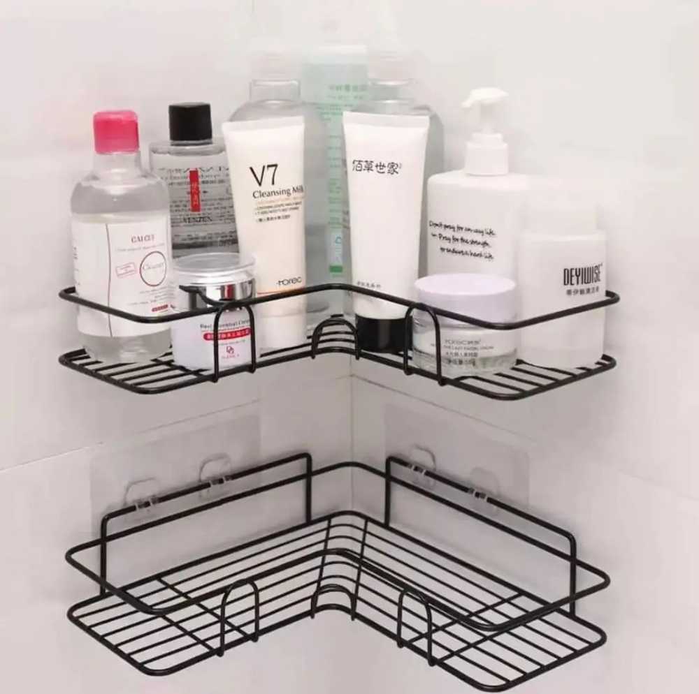 Bathroom Kitchen Punch Corner Frame Shower Shelf Wrought Iron Shampoo Storage Rack